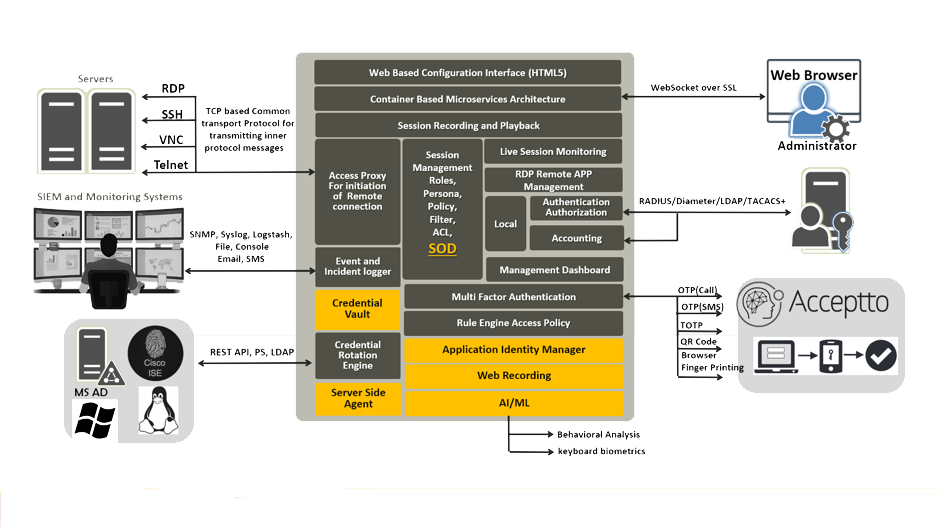 Techotics Privileged Access Manager solution is designed to secure and audit all IT resources and assets with zero or minimum cost and operational hassle. Available as either a hardware appliance or virtual machine, Techotics Privileged Access Manager enables security officers to achieve complete observability into remote and privileged sessions by recording all user activity across virtual, cloud and physical environments. It enforces multi-tiered constraints on session privileges, while maintaining accessibility and productivity. Techotics Privileged Access Manager securely stores sensitive administrative credentials, such as root and administrator passwords in a secure Password Vault further reducing the risk of leaked or shared credentials.